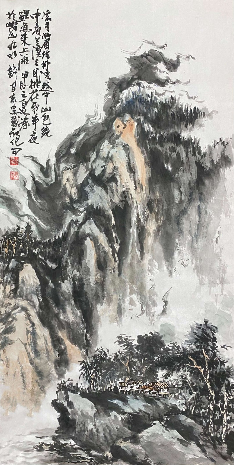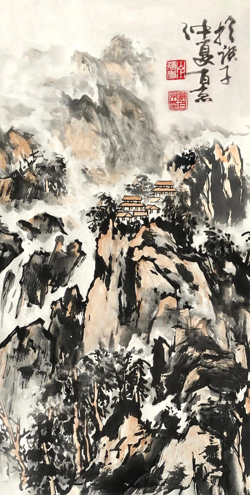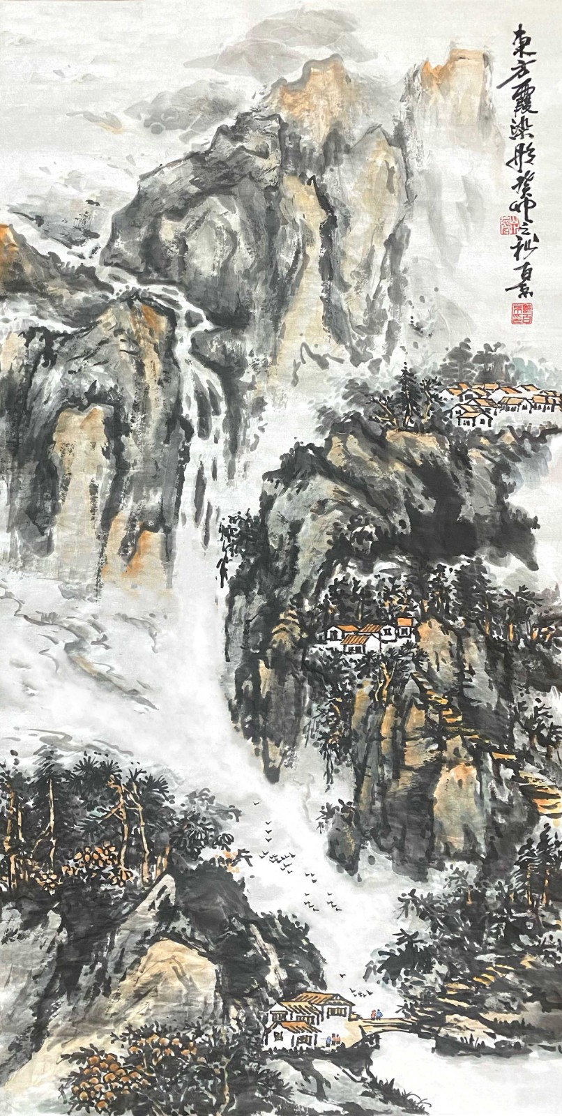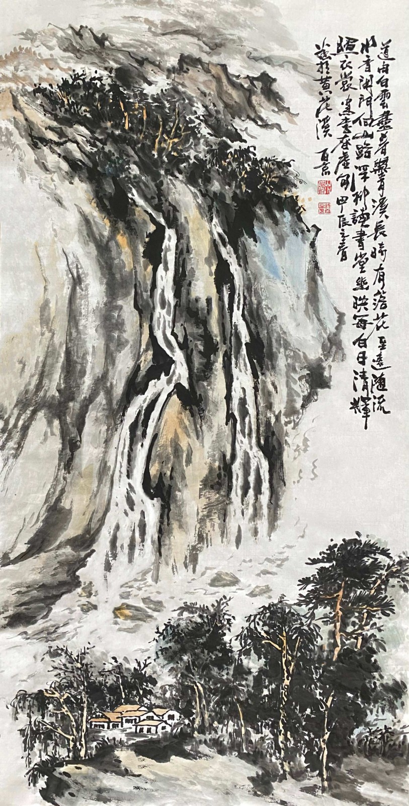 这种创新不是无源之水、无本之木,而是建立在对传统的深刻理解之上。许百京曾言:"创新必须先有传承,就像树要有根才能长得高。"他的《高山清风流水图》便是明证——画面中,传统皴法的运用炉火纯青,但整体气息却充满现代感;山石的塑造遵循古法,但空间处理却富有当代性。这种"旧瓶装新酒"的艺术创造,使他的作品既有历史的厚重感,又有时代的鲜活气息。