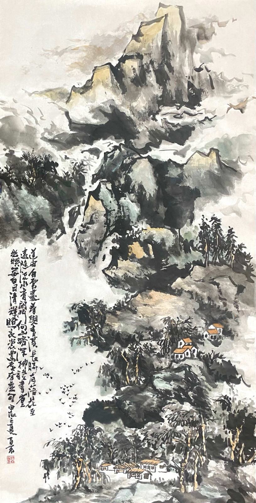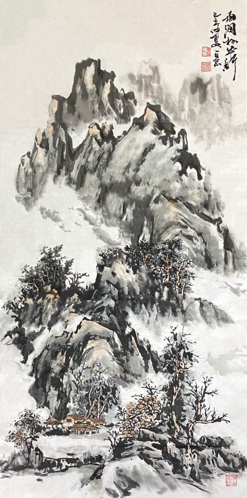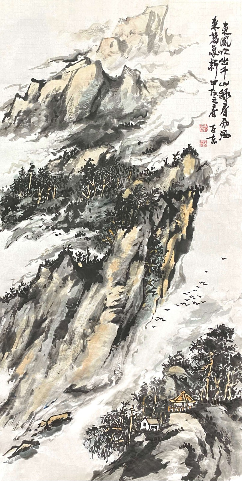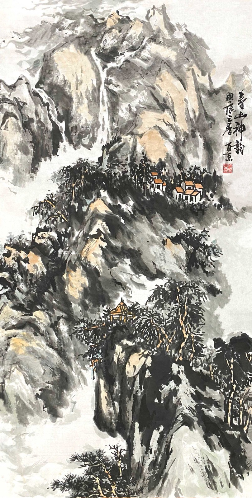 这种对传统的深度研习,使许百京逐渐形成了自己独特的艺术语言。他的山水画既有北派的雄强壮美,又有南派的秀润清雅;既有宋画的严谨精密,又有元画的写意抒情。这种融合南北、贯通古今的艺术取向,体现了他对传统"取其精华,去其糟粕"的辩证态度。