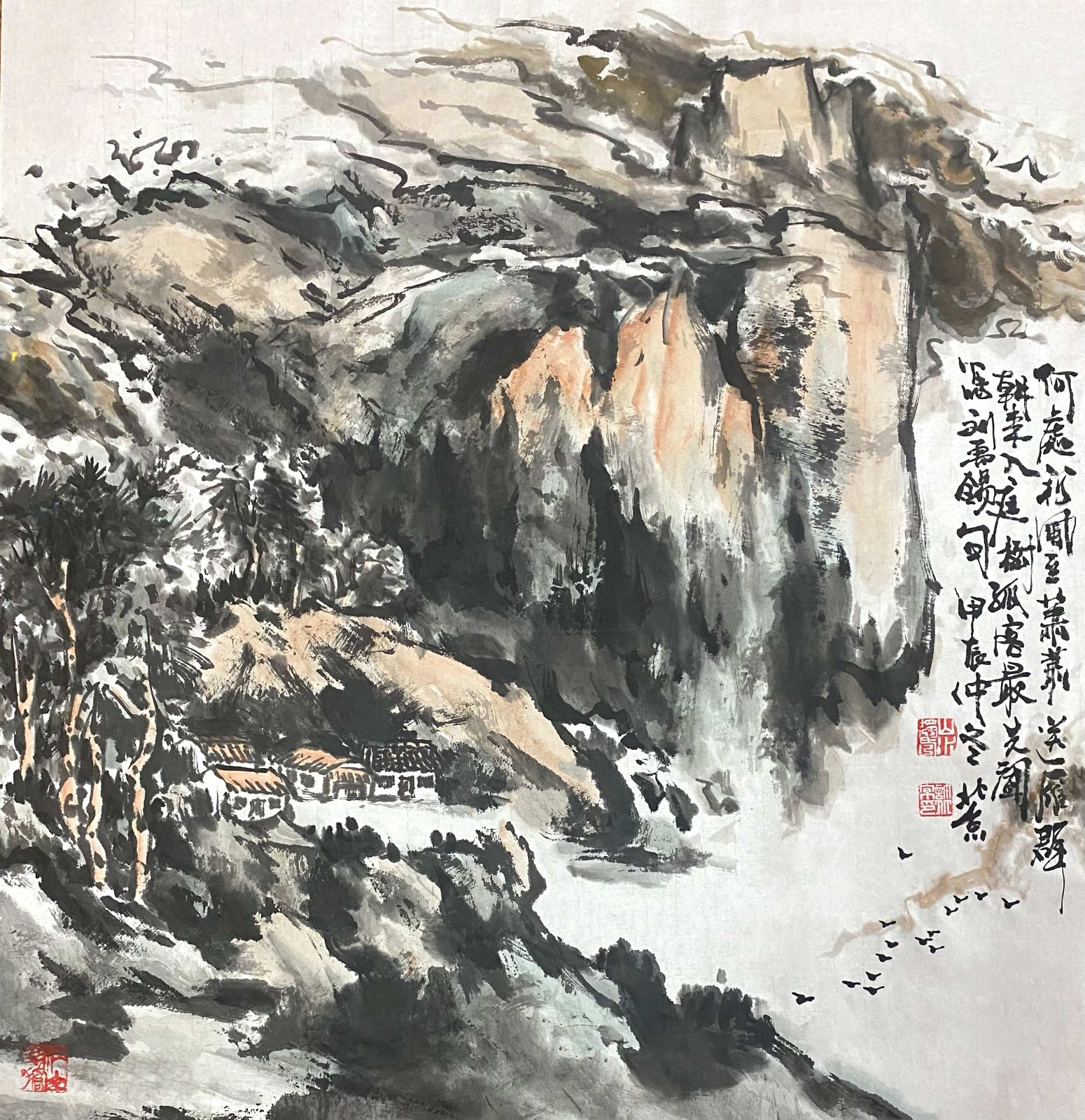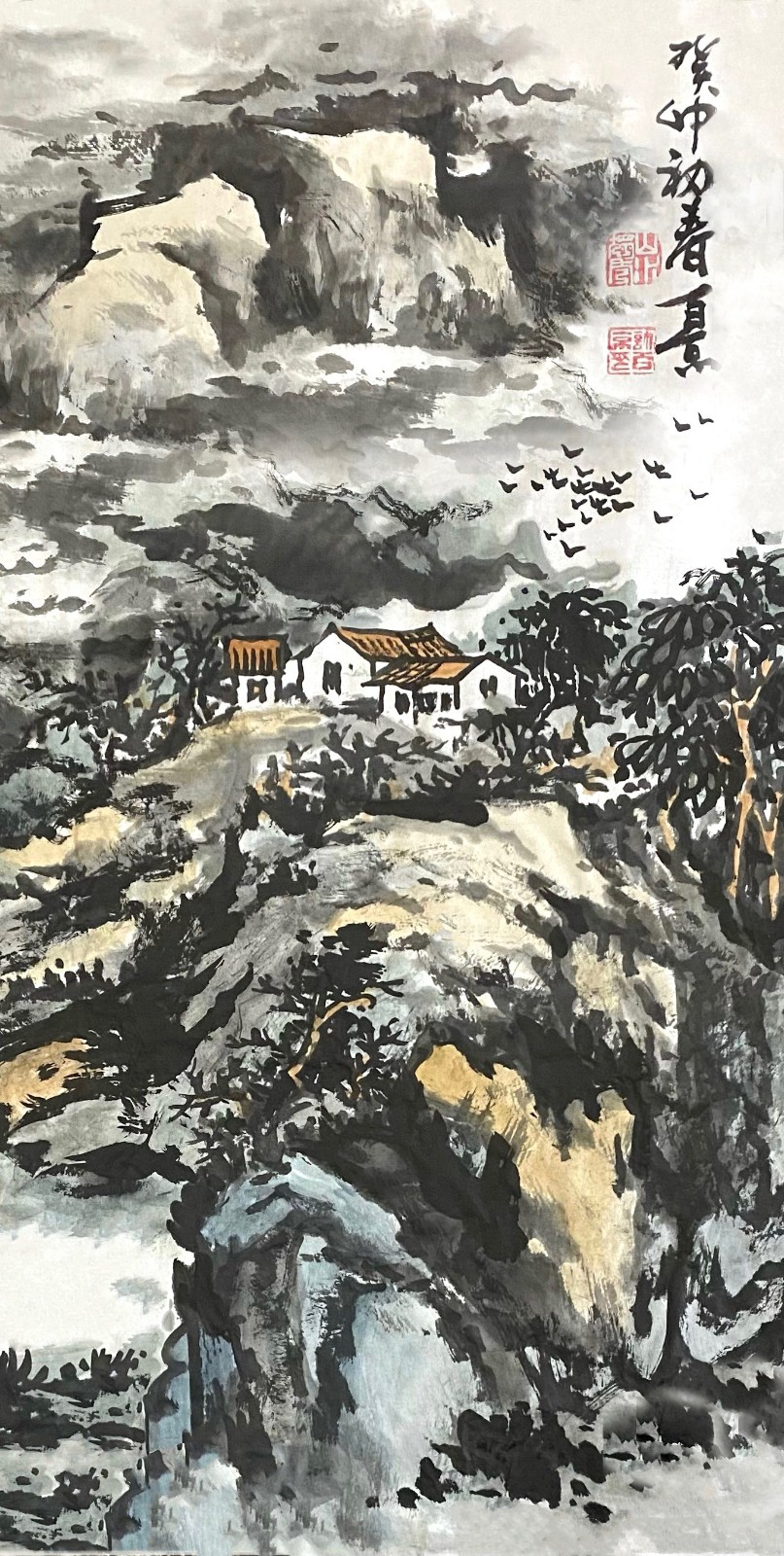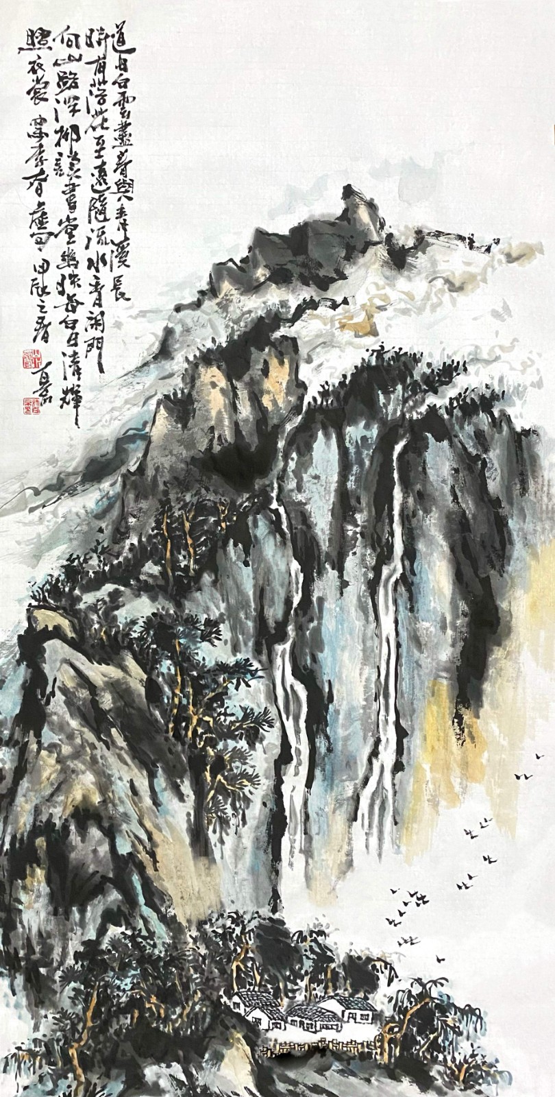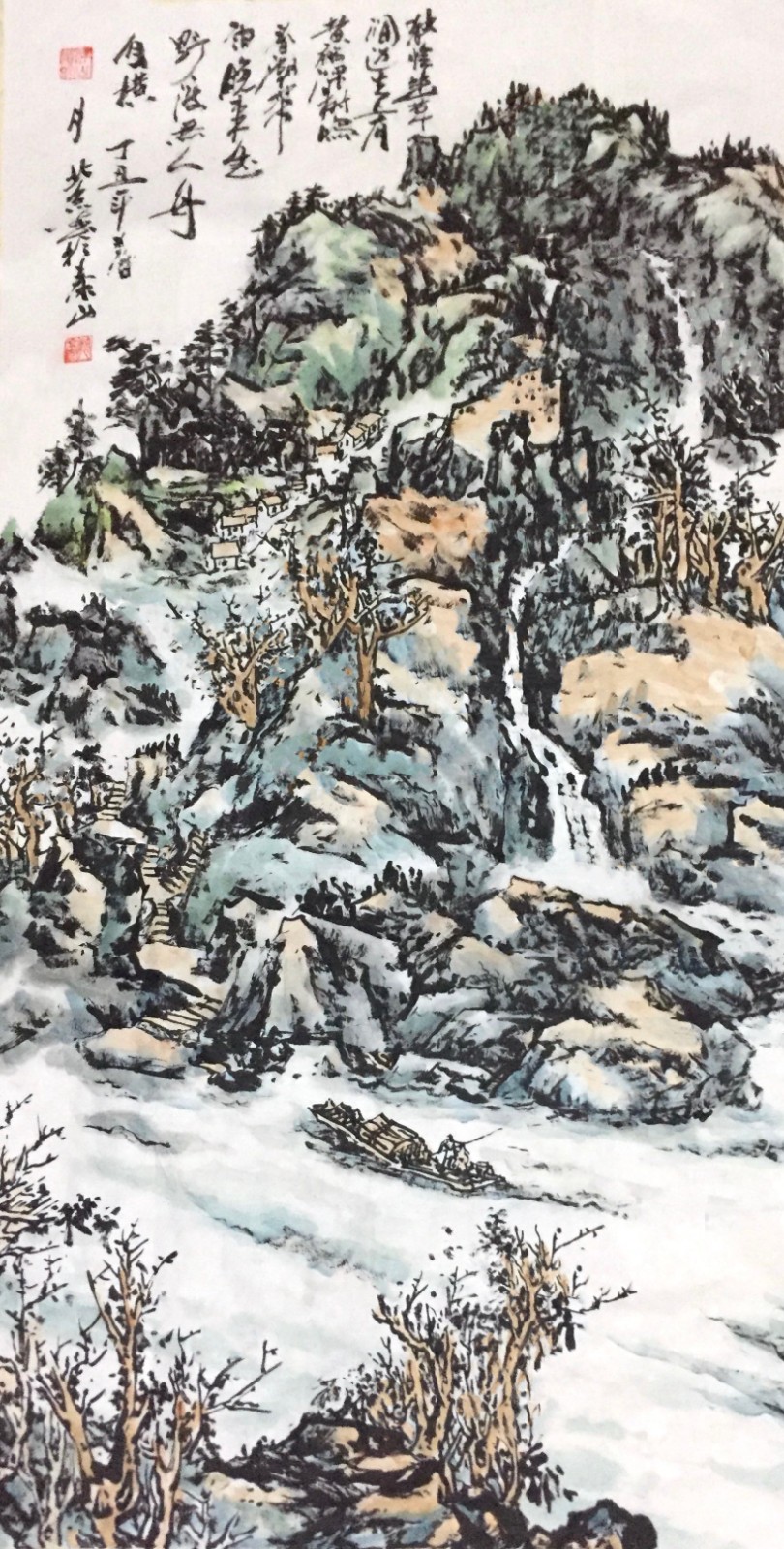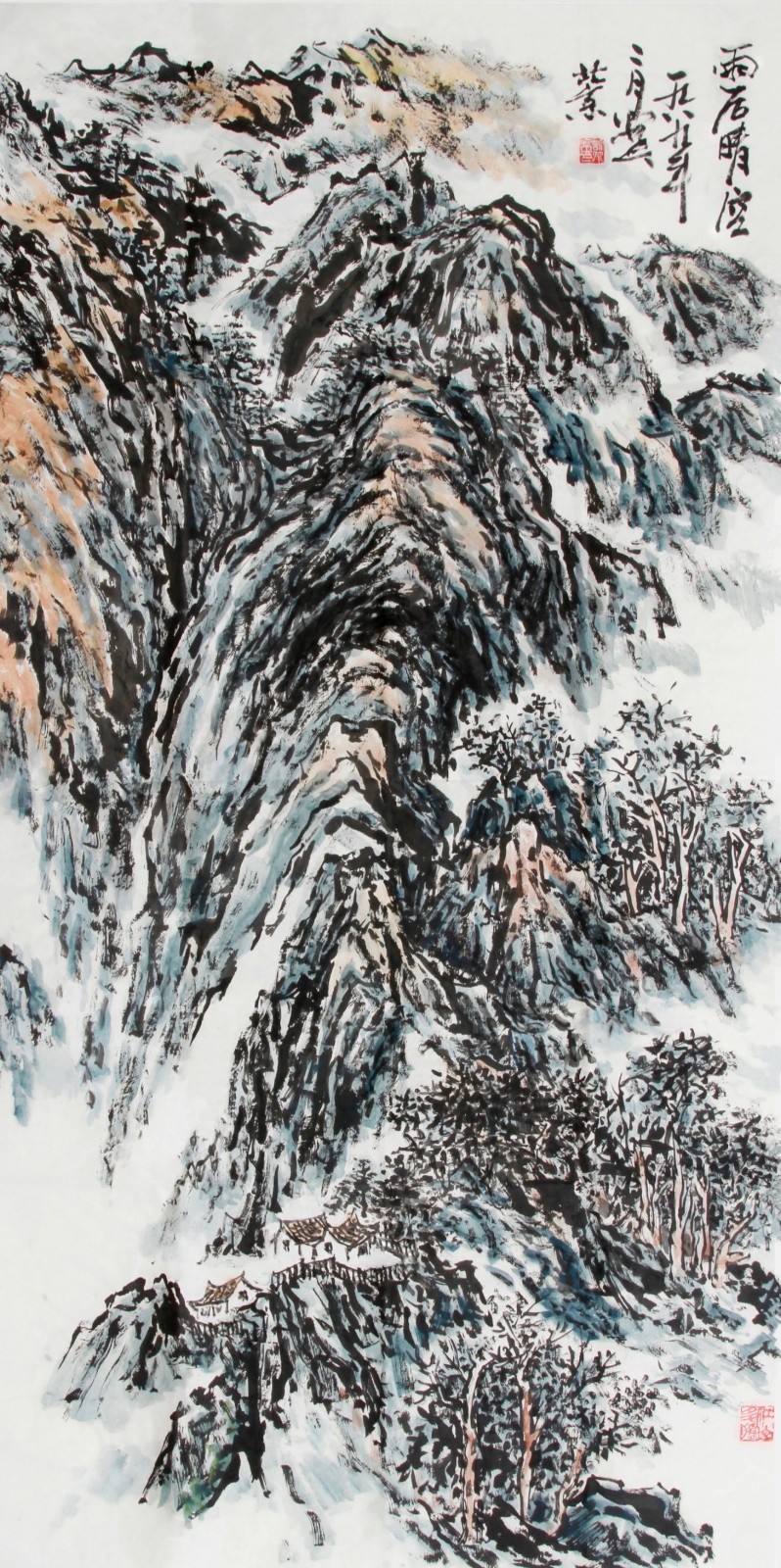 这种对传统的深度研习,使许百京逐渐形成了自己独特的艺术语言。他的山水画既有北派的雄强壮美,又有南派的秀润清雅;既有宋画的严谨精密,又有元画的写意抒情。这种融合南北、贯通古今的艺术取向,体现了他对传统"取其精华,去其糟粕"的辩证态度。
