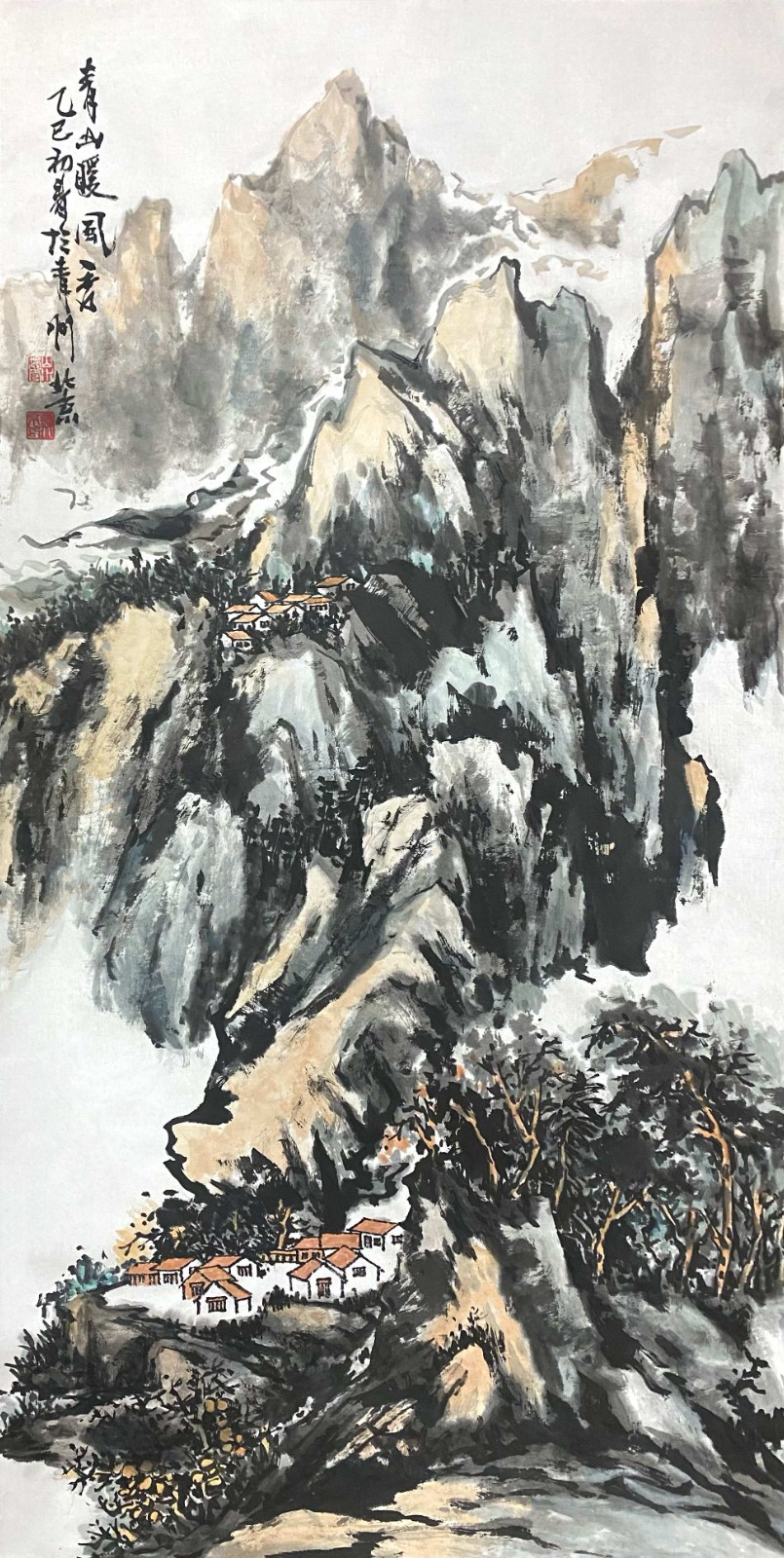 许百京的山水画另一显著特点是"笔墨当随时代"的创作理念。他的作品虽然根植传统,但从不回避当代题材和现实关怀。如《战地黄花》对革命历史的追忆,《中国梦劳动美》对时代精神的诠释,都体现了一位当代艺术家的社会责任感和人文关怀。这种将个人艺术追求与国家民族命运相连的创作态度,使他的作品超越了单纯的审美范畴,具有了更深刻的文化意义。