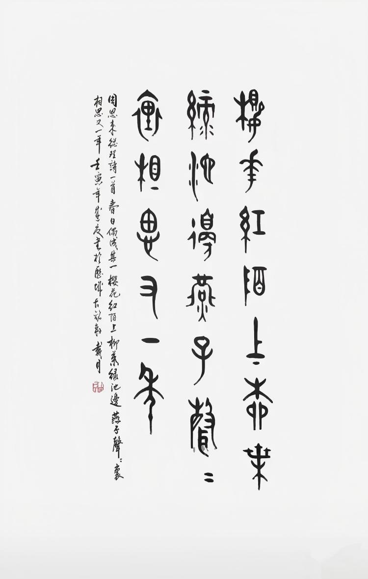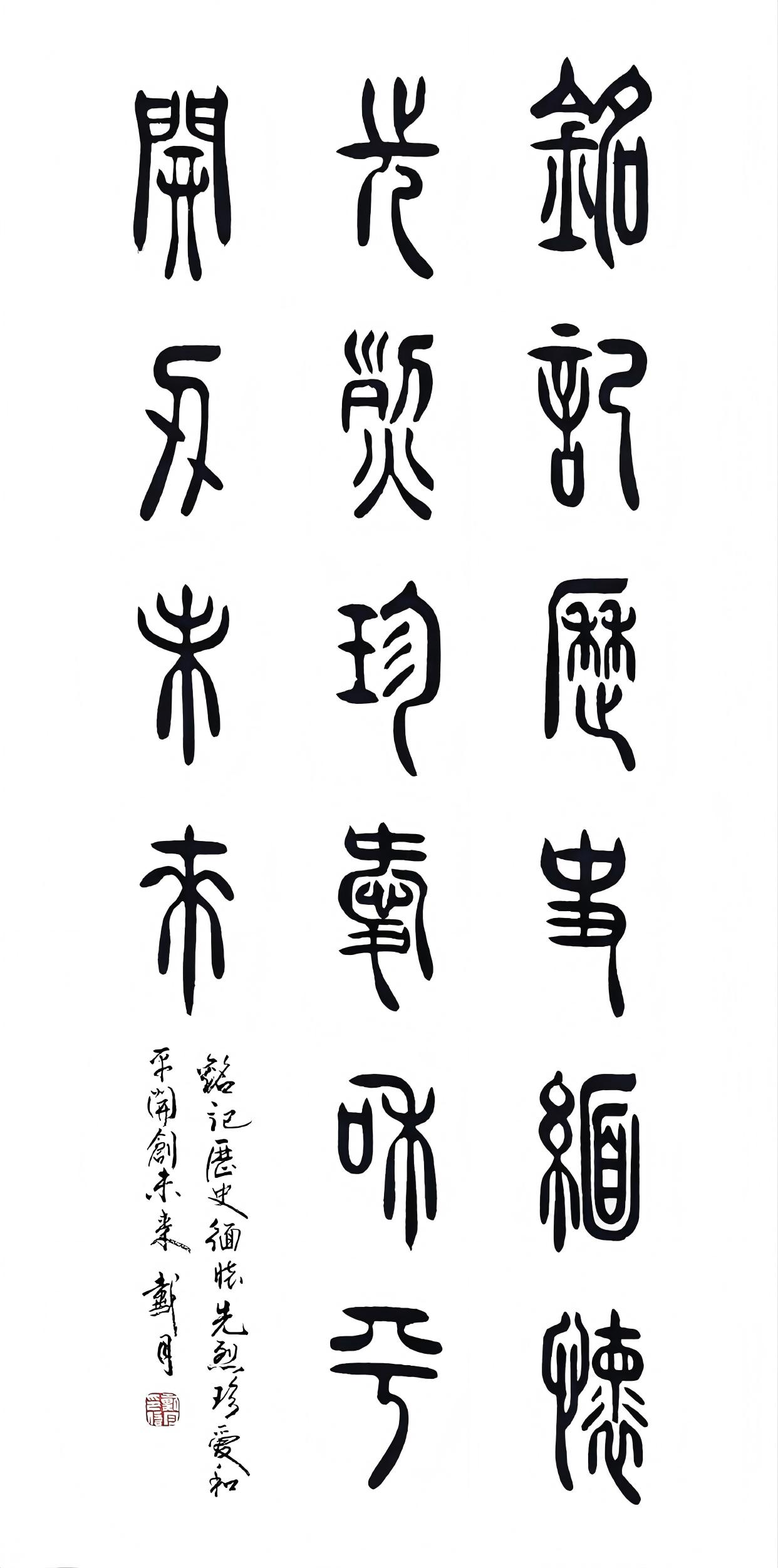 他深知古文字书法是中国传统文化的瑰宝,承载着中华民族的历史记忆与精神追求。他希望通过自己的作品,让更多的人了解古文字书法,感受中国传统文化的魅力。在他的作品中,传递着对传统文化的敬畏与热爱之情,每一个字符都蕴含着他对历史、对文化的深刻思考。
