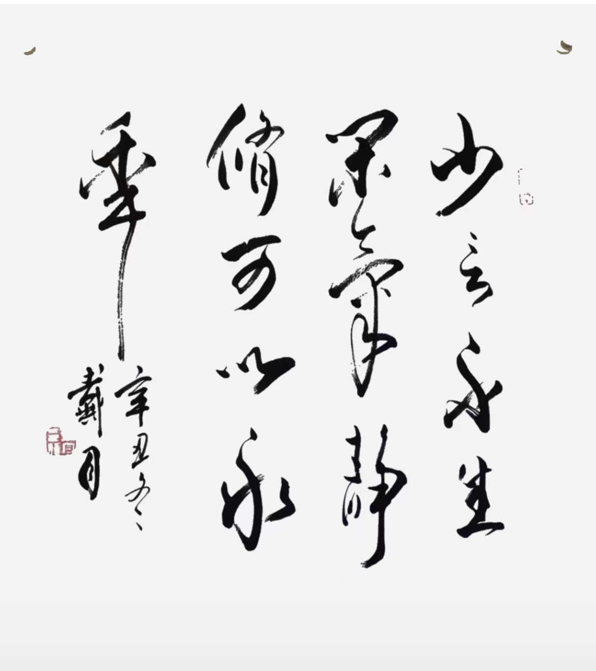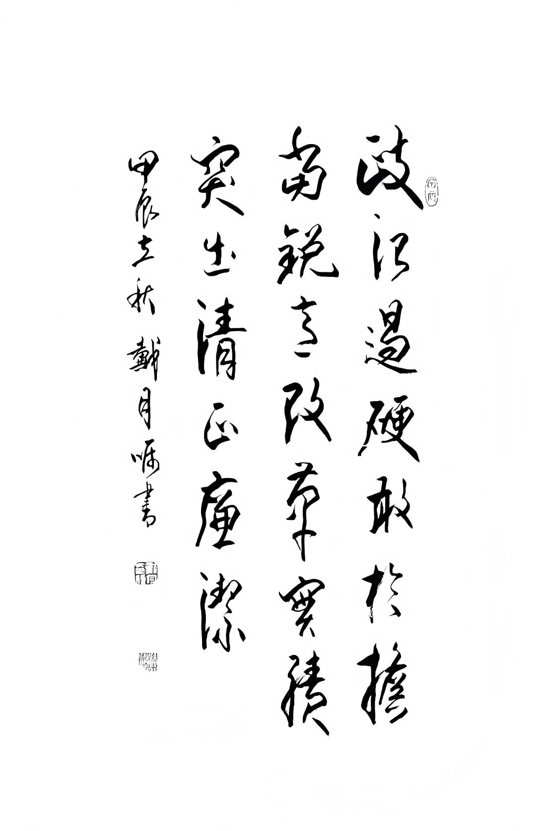蒋维崧先生作为著名的古文字学家和书法家,其严谨的治学态度与精湛的书法技艺,对戴月产生了深远的影响。在蒋先生的悉心指导下,戴月开始系统地学习古文字知识,从甲骨文、金文到篆书等,他如饥似渴地汲取着古文字的养分,为日后的书法创作奠定了坚实的基础。武中奇先生豪放洒脱的书法风格,则让戴月领略到了书法艺术的雄浑气魄与独特魅力,激发了他对书法艺术表现力的追求。而徐鹤年先生的教导,更是从多方面塑造了他的艺术素养与审美观念。