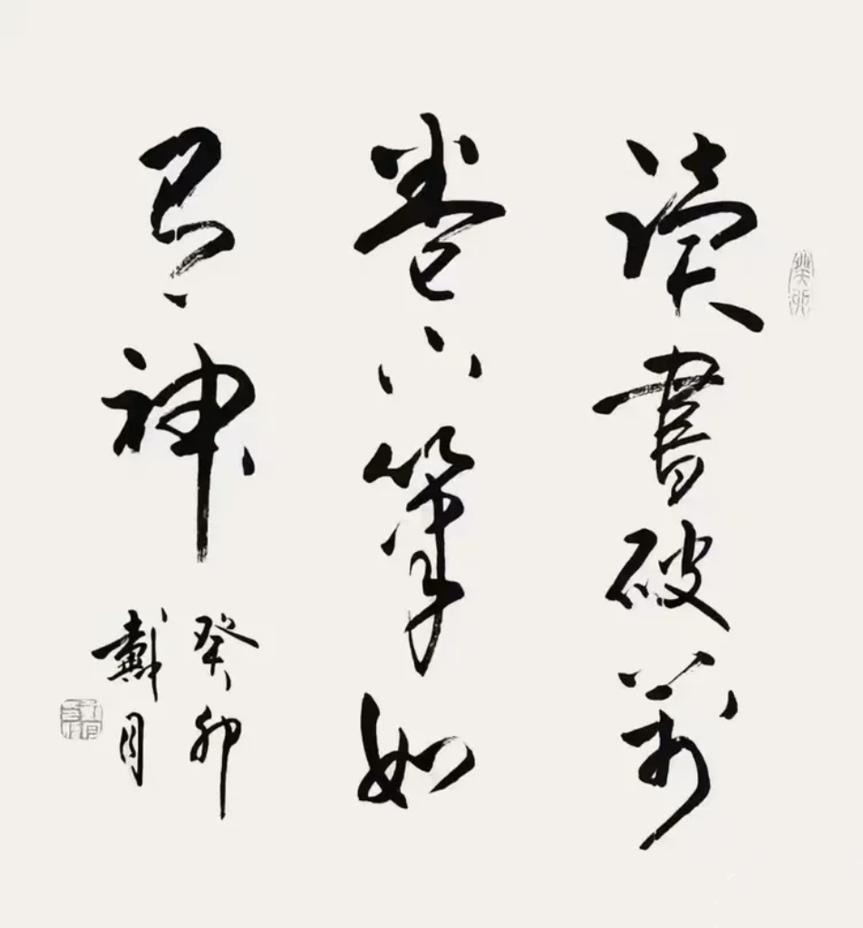 在这样的艺术启蒙环境中,戴月对古文字书法的热爱之种悄然种下,并在岁月的滋养中生根发芽。他沉浸于古文字的世界,感受着每一个字符背后所蕴含的历史信息与文化底蕴,这种对古文字的深刻理解与热爱,成为他日后艺术创作的不竭源泉。