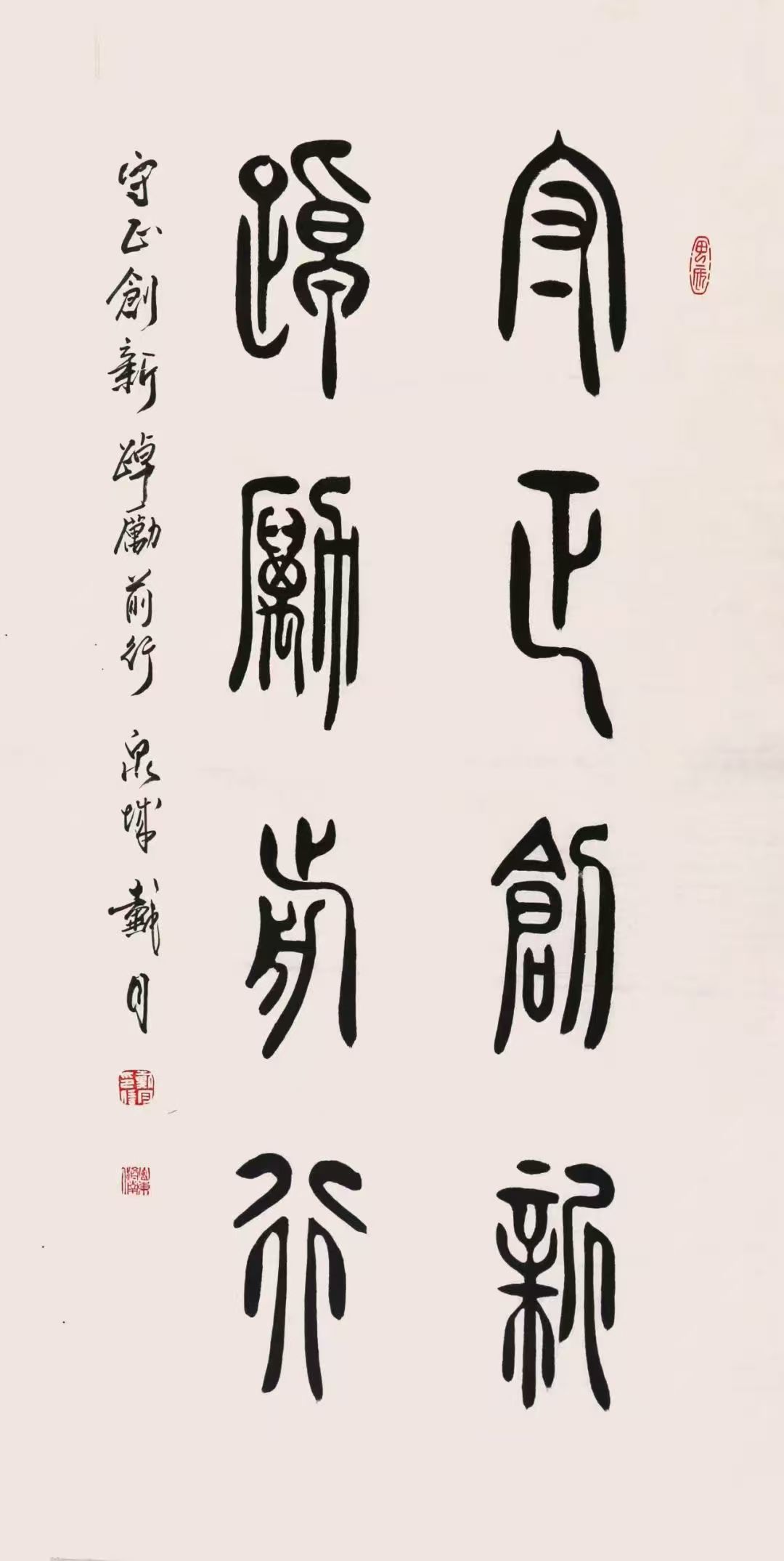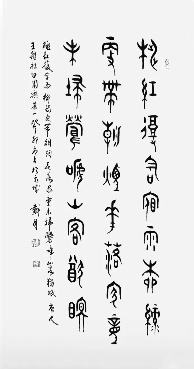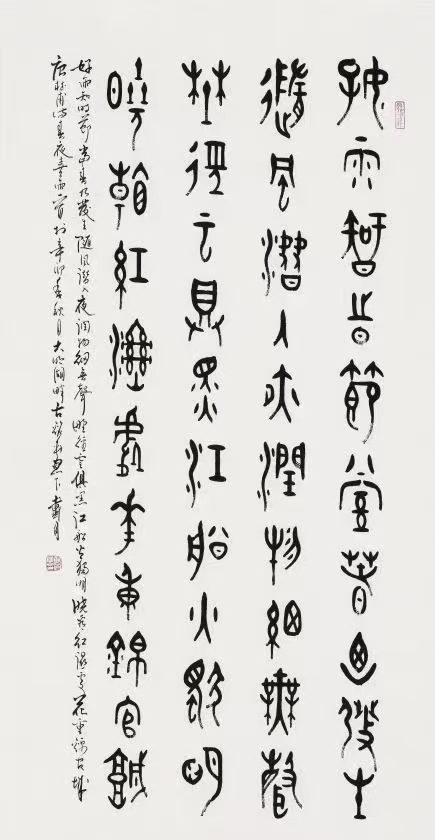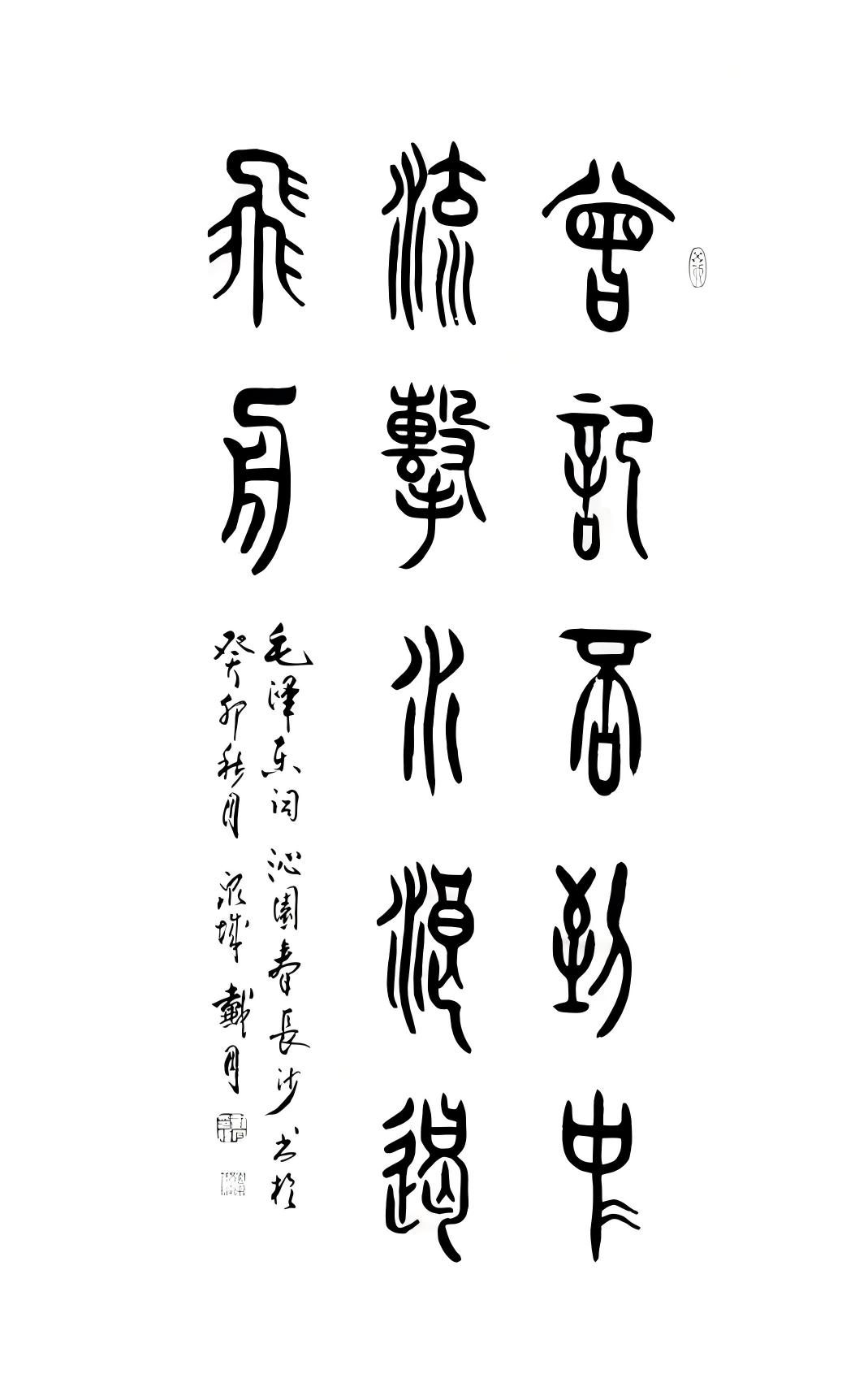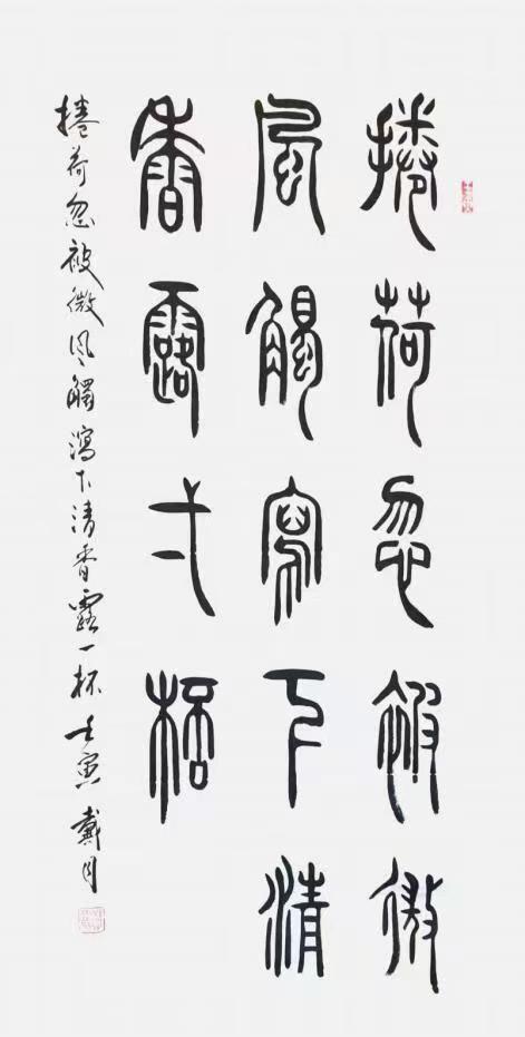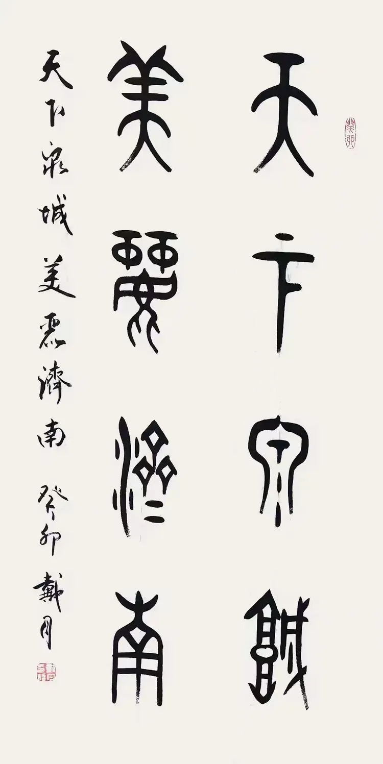 古文字书法创作并非易事,它不仅要求艺术家具备扎实的书法功底,更需要对古文字有深入的研究与理解。戴月在艺术创作的道路上,不断探索,勇于尝试,力求在继承传统的基础上实现突破。