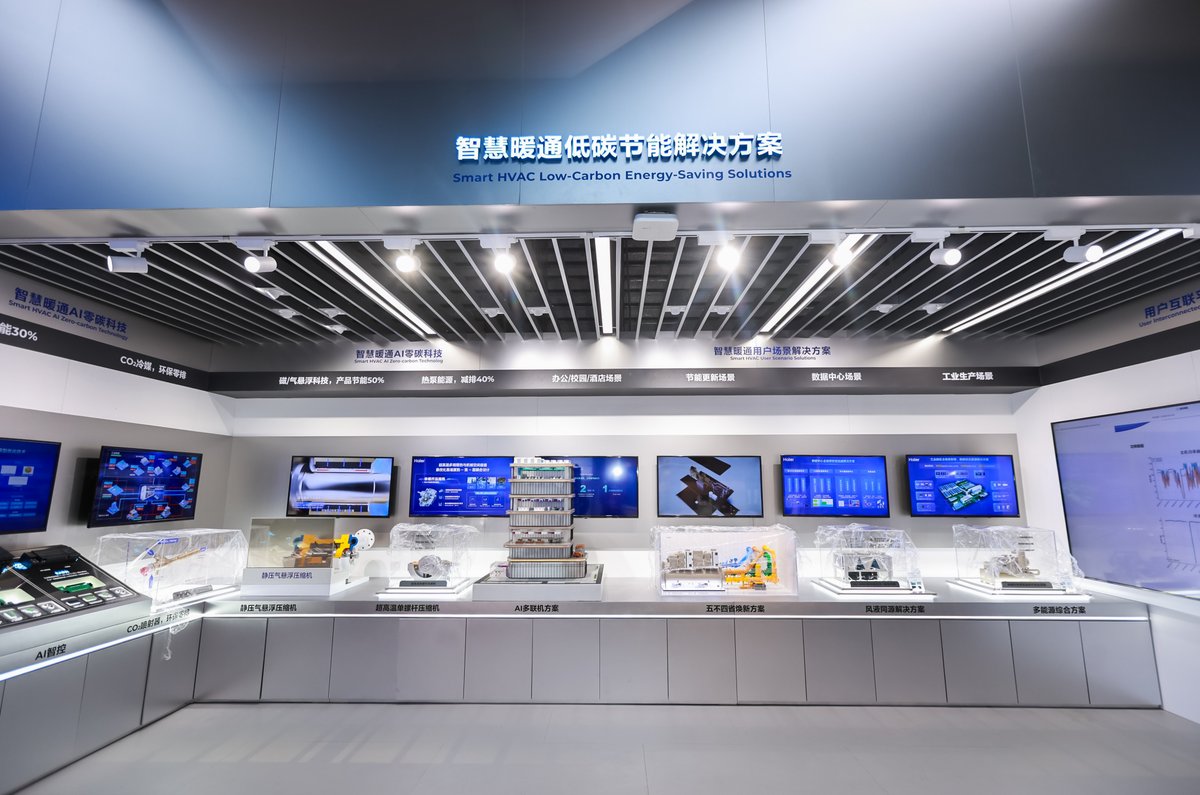 AWE现场,海尔智家工商业全场景解决方案集中亮相。海尔暖通商用以AI零碳科技为核心,集中展示覆盖商用空调、商用净水、商用热水、商用电热的智慧暖通低碳节能全场景解决方案。依托“AI+暖通”技术布局,海尔暖通商用将磁气悬浮科技、超高温热泵、AI智控、CO?冷媒等前沿技术深度融入产品体系,以硬核技术支撑高效节能与绿色低碳。方案以用户需求为中心,面向数据中心、工业生产等重点场景,推出精准匹配HVAC细分需求的智慧暖通解决方案,为千行百业提供更智能、更绿色、更专业的智慧能源服务。聚焦技术引领与方案创新,与客户实现双向共赢。