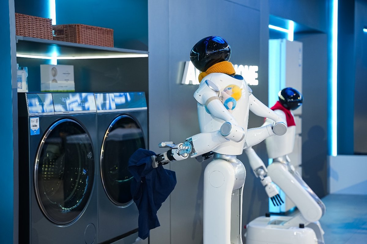 清晨八点,当你关上家门奔赴职场,身后的家即自动开启无人值守模式:具身智能机器人精准识别沙发上散落的衣物,送入洗衣机自动匹配洗护程序;冰箱通过视觉识别临期食材,同步向机器人下达料理指令;清洁机器人自主规划清扫路径,针对重污区域自动强化清洁;陪伴机器人准时提醒长辈服药……当你结束工作驱车返程,车辆定位同步触发家庭场景联动,空调提前调至舒适温度,单元门与电梯同步联动等候——这不是科幻电影,而是2026年AWE上海尔智家展示的无人家务实景。