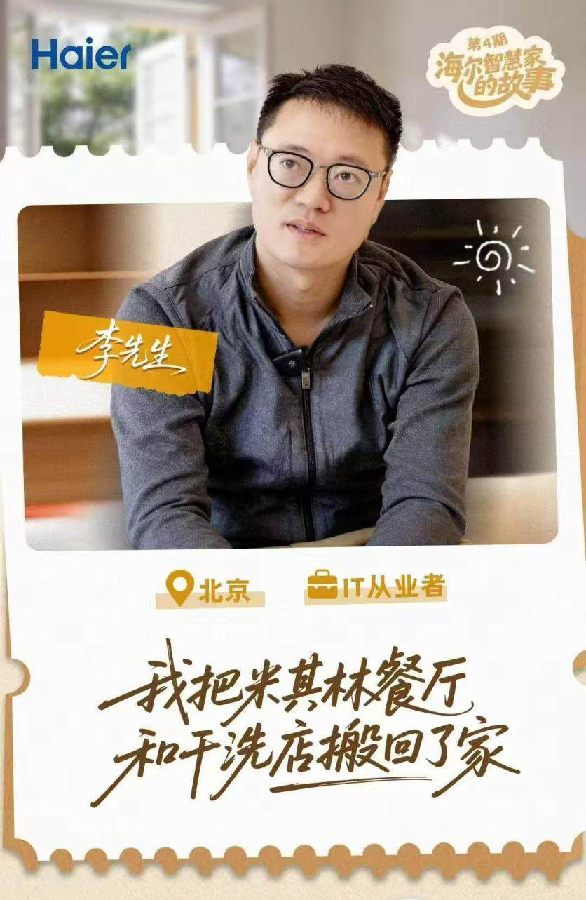李先生觉得,海尔智慧家庭把做饭、洗衣这些烦琐家务变成了顺手小事,就像把米其林餐厅和干洗店搬回了家。他可以把更多时间留给家人,也留给了那个可以随时卸下疲惫、自由舒缓的自己。